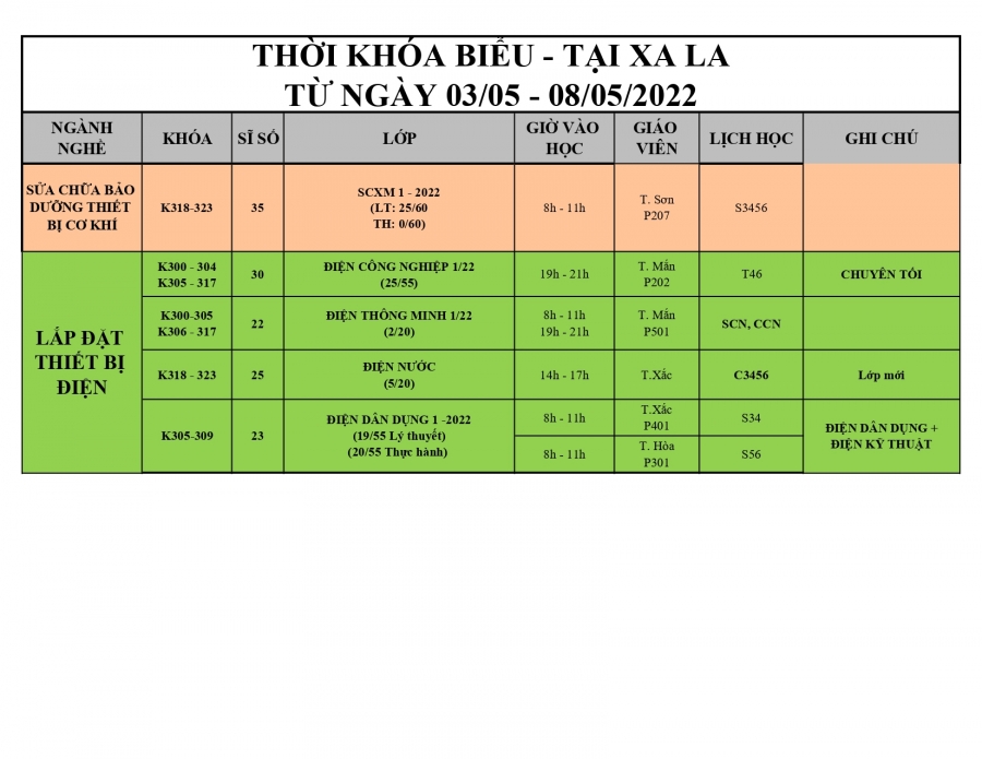THÔNG BÁO LỊCH HỌC TỪ 03/05/2022 ĐẾN 08/05/2022
