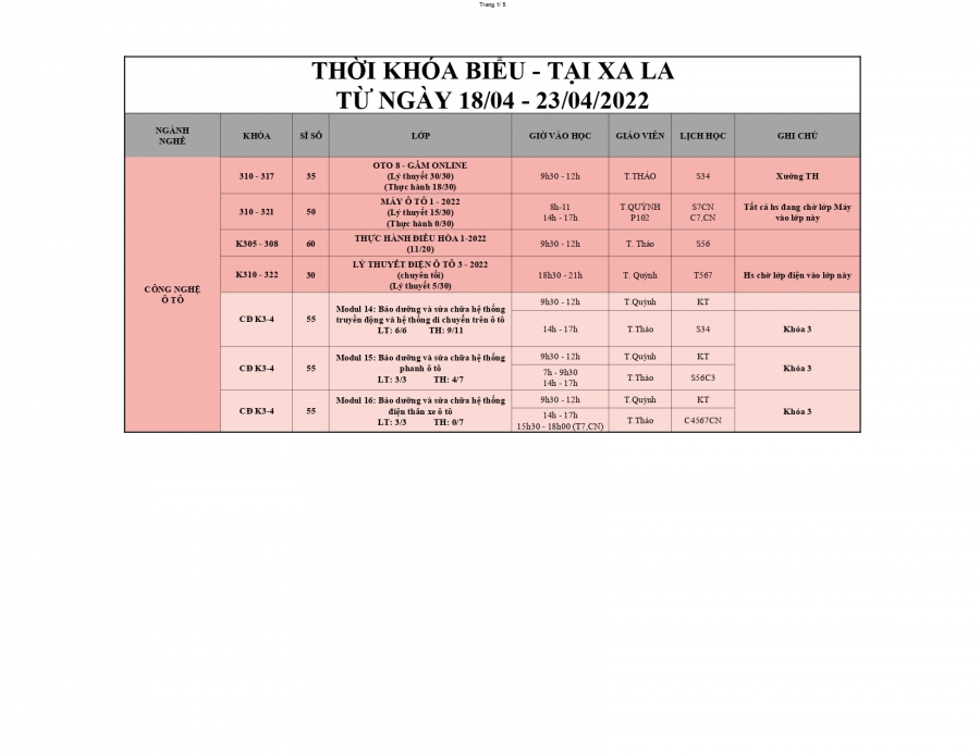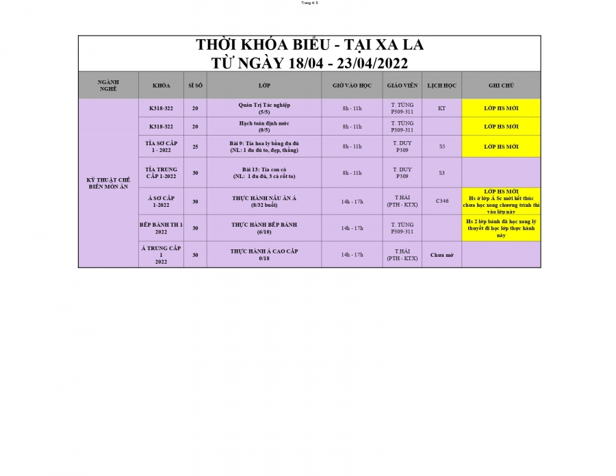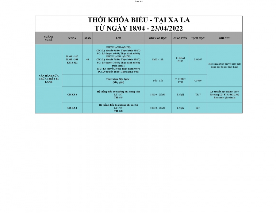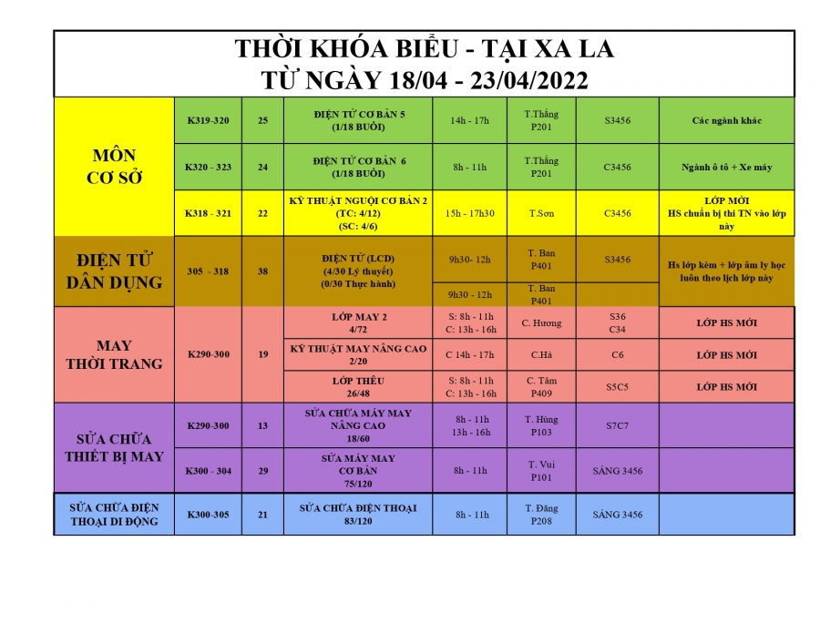 THÔNG BÁO LỊCH HỌC TỪ 18/04/2022 ĐẾN 24/04/2022
