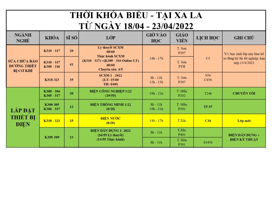 Lớp mới: Điện nước (Tất cả hs đăng ký nghề điện nước, điện tổng hợp, lắp đặt thiết bị điện chưa học điện nước đi học lớp này)