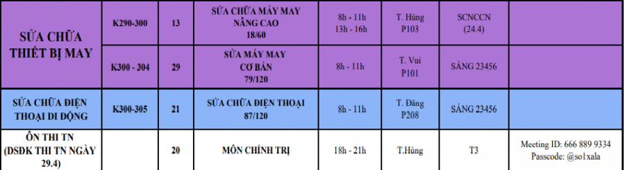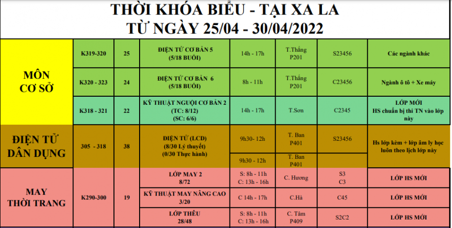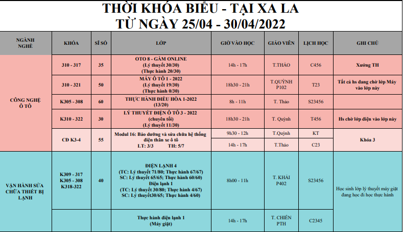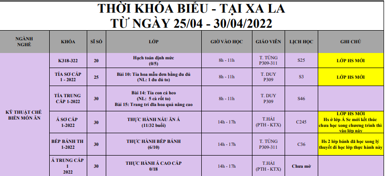THÔNG BÁO LỊCH HỌC TỪ 25/04/2022 ĐẾN 30/04/2022